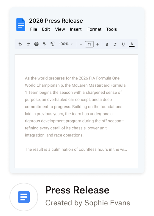 With thousands of files moving between teams and tools, McLaren uses Dash to cut through the chaos and stay ahead of the pack. AI-powered search surfaces what they need across platforms, chat can draft and summarize in seconds, and Stacks turn scattered resources into shared project hubs.